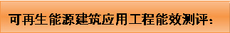 可再生能源建筑應(yīng)用工程能效測(cè)評(píng)是指對(duì)地源熱泵系統(tǒng)、太陽(yáng)能熱利用系統(tǒng)、太陽(yáng)能光伏系統(tǒng)進(jìn)行指標(biāo)評(píng)價(jià)、性能合格判定和性能分級(jí)評(píng)價(jià),以及節(jié)能效益、環(huán)境效益、經(jīng)濟(jì)效益評(píng)估。
