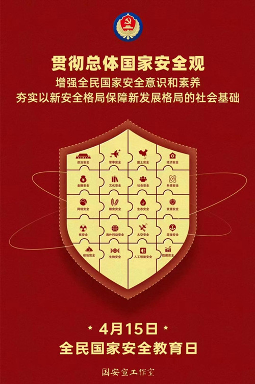 2023年4月15日是第八個全民國家安全教育日。活動主題為:“貫徹總體國家安全觀,增強全民國家安全意識和素養,夯實以新安全格局保障新發展格局的社會基礎。”